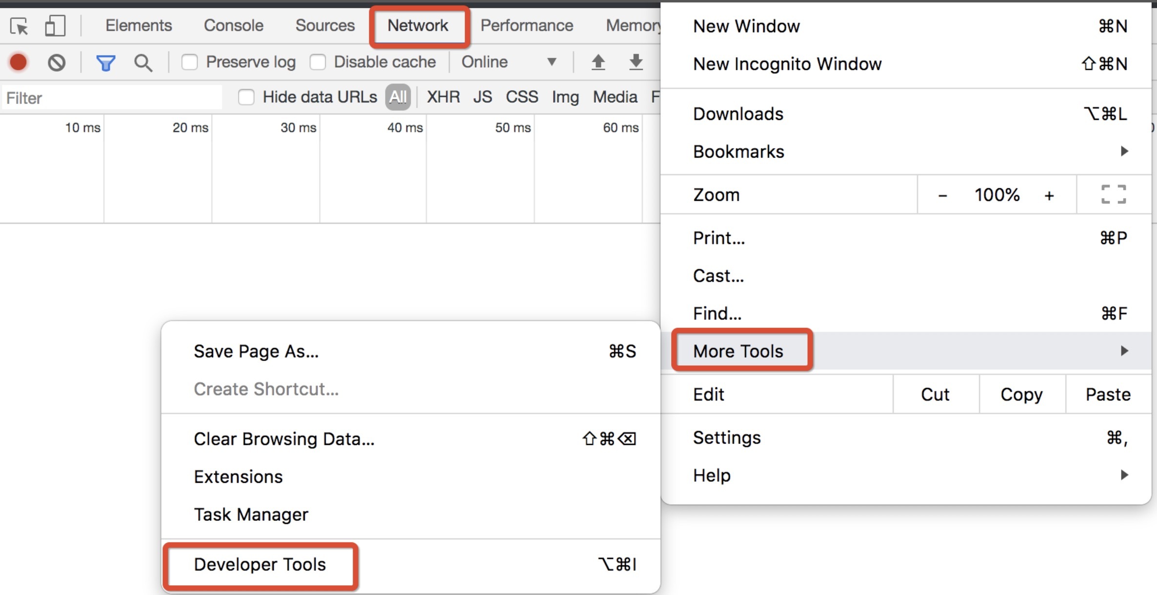 然后,打开开发者工具,并切换到 Network 标签:
