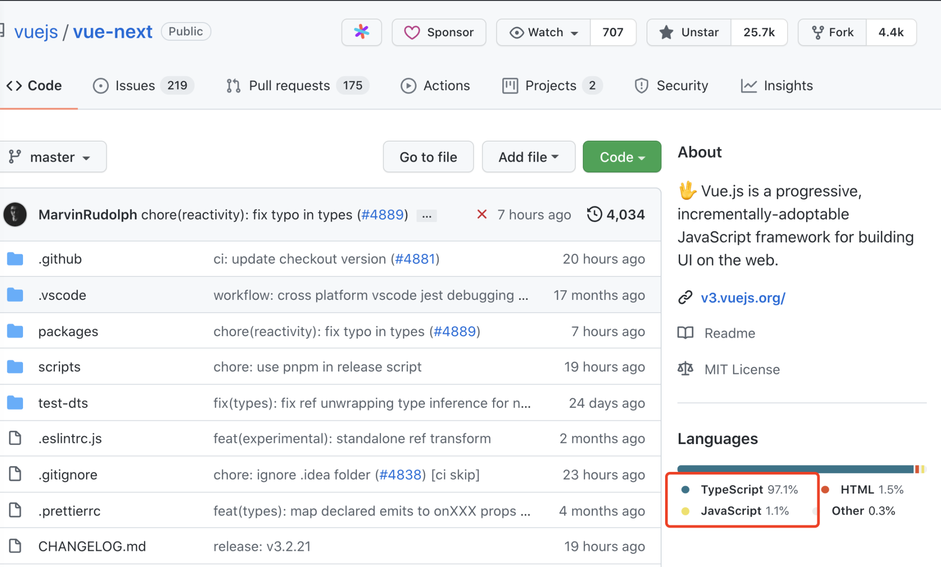 TypeScript是微软开发的JavaScript的超集,这里说的超集,意思就是TypeScript在语法上完全包含JavaScript。TypeScript的主要作用是给JavaScript赋予强类型的语言环境。现在大部分的开源项目都是用TypeScript构建的,并且Vue 3本身TS的覆盖率也超过了95%。