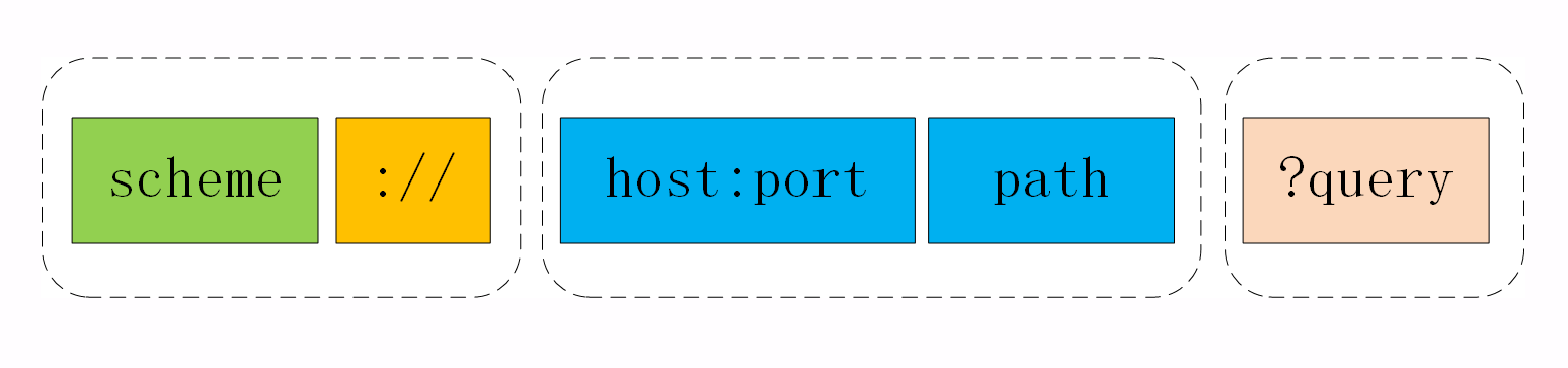 下面的这张图显示了URI最常用的形式,由scheme、host:port、path和query四个部分组成,但有的部分可以视情况省略。